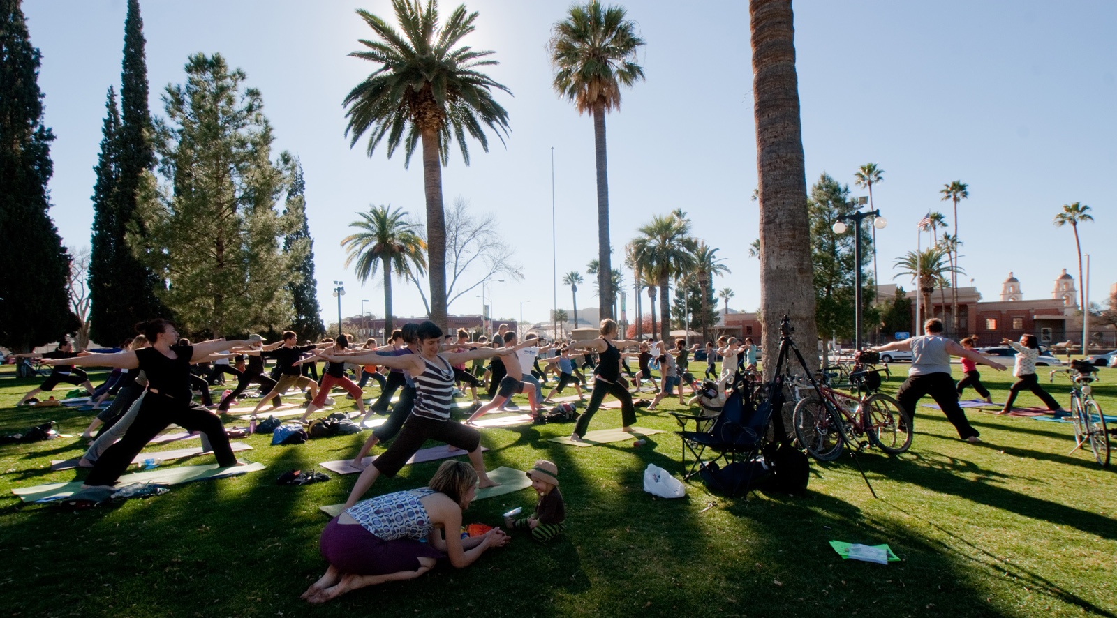 What started as a local deal is now picking up steam nationwide. Recently, there was a Gorilla Yogis event at Armory Park in Tuscon, Arizona to help raise money for the victims of the shooting spree.
