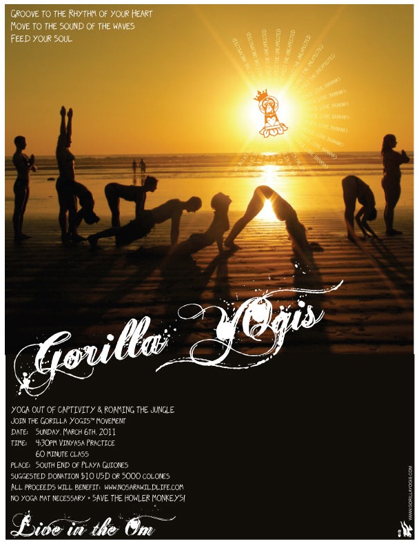 Costa Rica will be hosting its first Gorilla Yogis event this upcoming weekend to benefit Nosarawildlife.com which helps save the Howler monkeys.