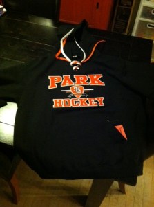 Last night was a big night for my son. We finally got the email from our hockey team’s manager, that the team spirit gear (St. Louis Park embroidered sweatshirts, hats and jackets) had arrived and he would be handing out all of the highly anticipated goodies after practice.